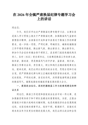 在2026年全镇严肃换届纪律专题学习会上的讲话