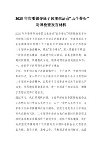 2025年市委领导班子民主生活会“五个带头”对照检查发言材料