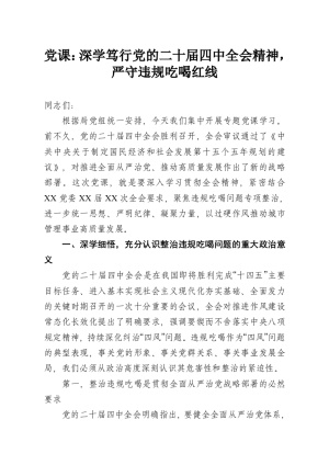 党课:深学笃行党的二十届四中***精神,严守违规吃喝红线