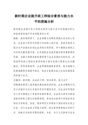 新时期企业提升政工师综合素质与能力水平的措施分析