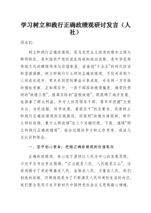 在树立和践行正确政绩观学习教育读书班上的交流研讨发言(1)