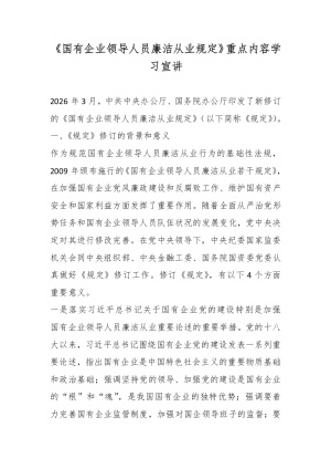 《国有企业领导人员廉洁从业规定》重点内容学习宣讲