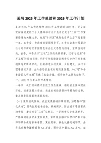 某局2025年工作总结和2026年工作计划
