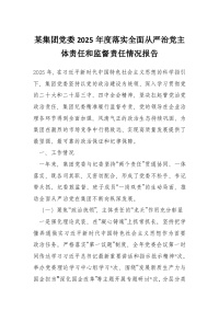 某集团党委2025年度落实全面从严治党主体责任和监督责任情况报告
