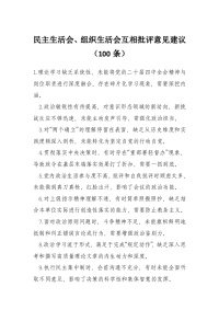 民主生活会、组织生活会互相批评意见建议(100条)