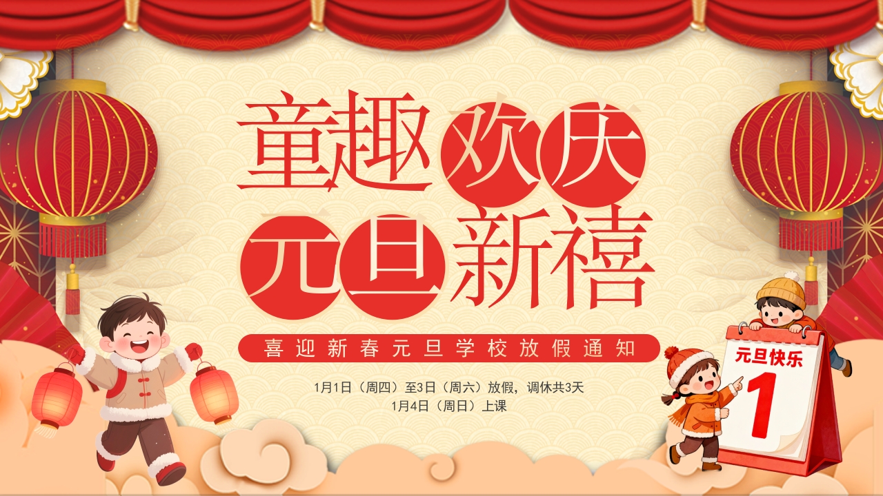 2026新春元旦学校放假通知PPT创意精美童趣欢庆元旦新禧下载