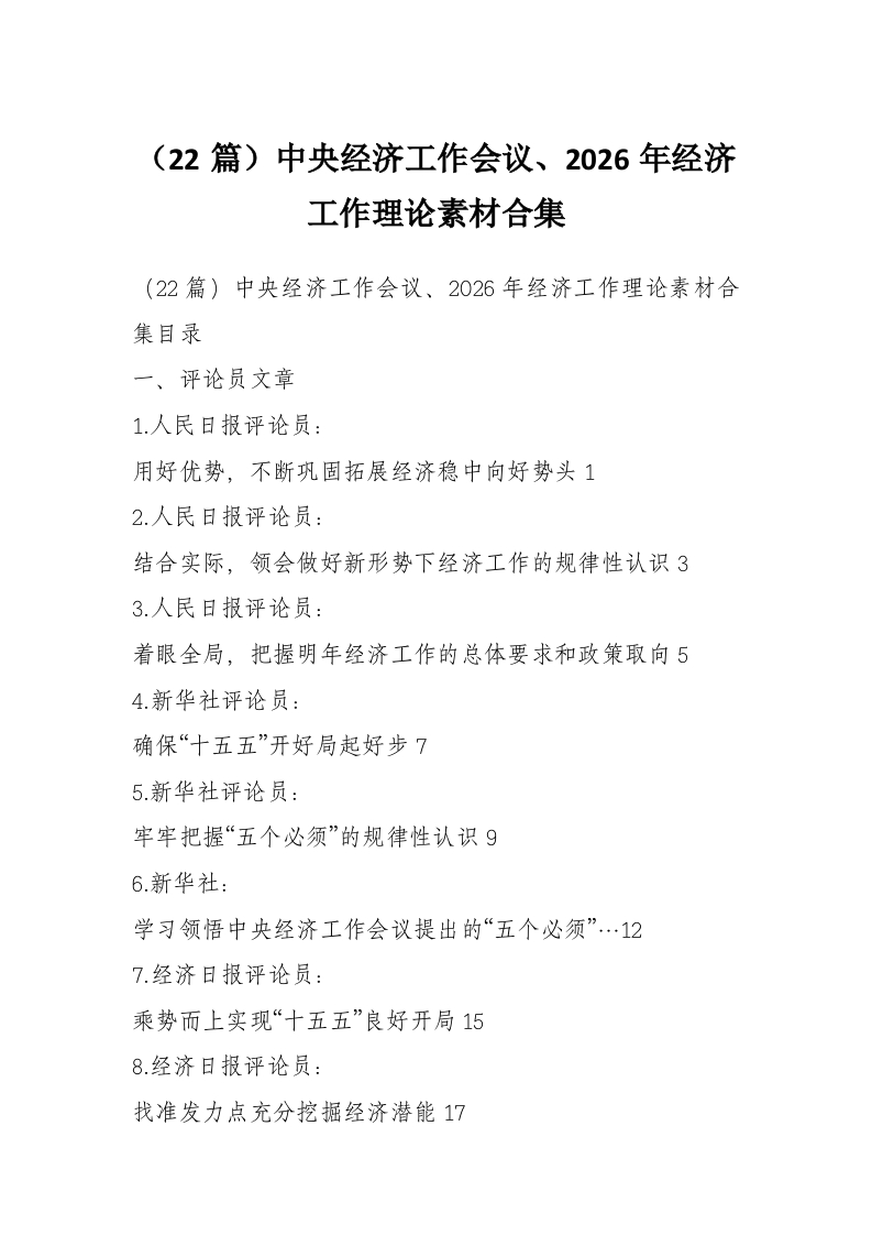 (22篇)中央经济工作会议、2026年经济工作理论素材合集