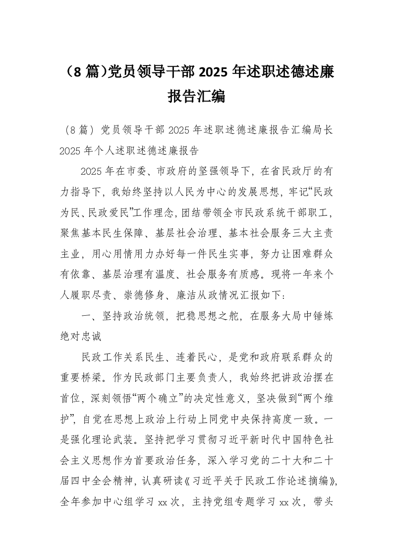 (8篇)党员领导干部2025年述职述德述廉报告汇编