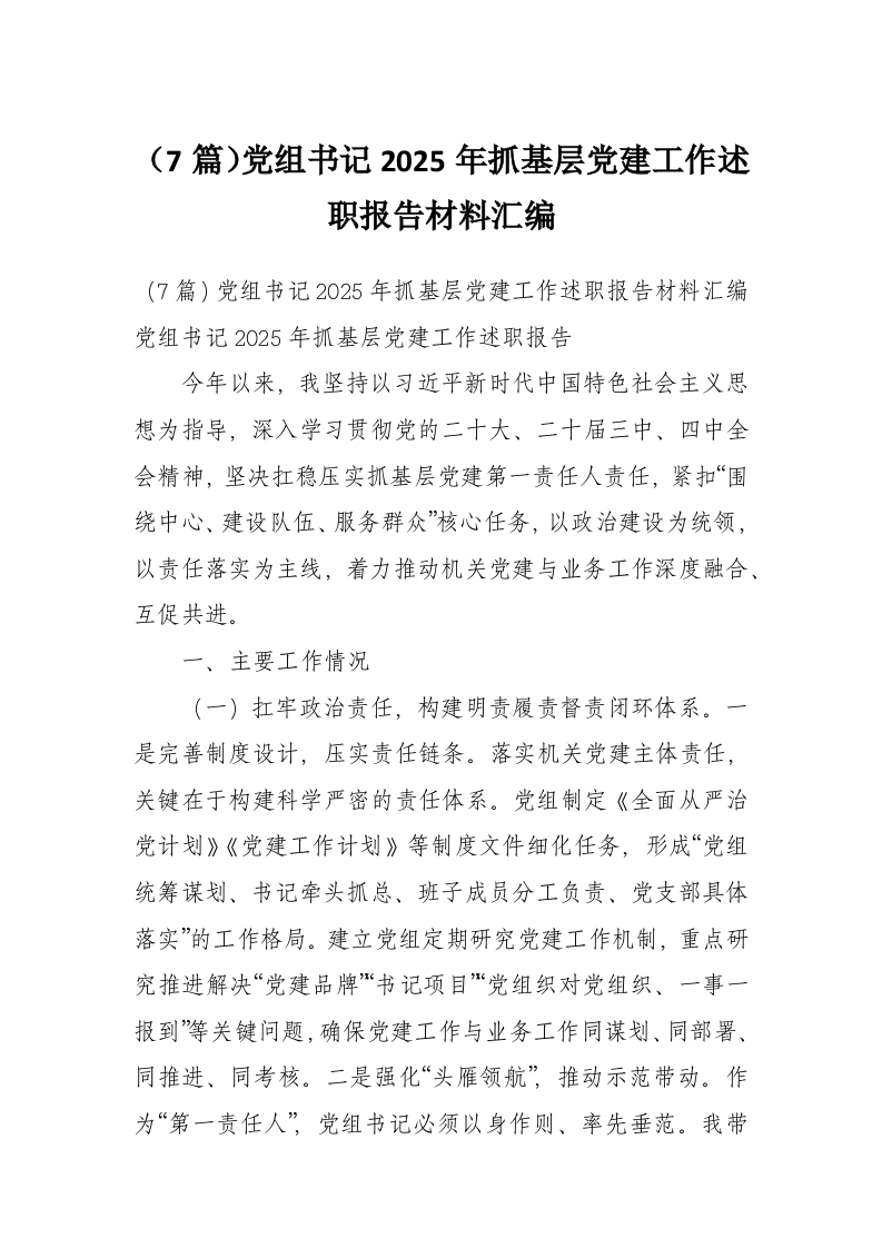 (7篇)党组书记2025年抓基层党建工作述职报告材料汇编