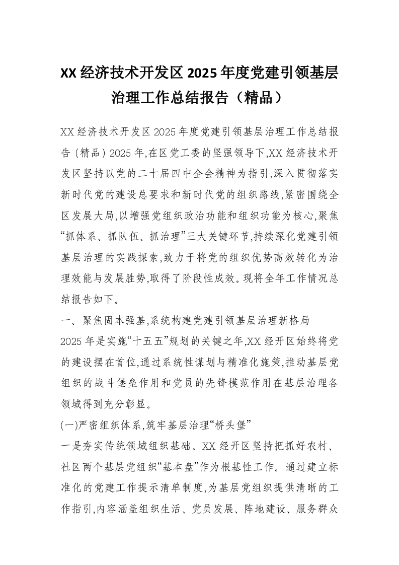 XX经济技术开发区2025年度党建引领基层治理工作总结报告(精品)