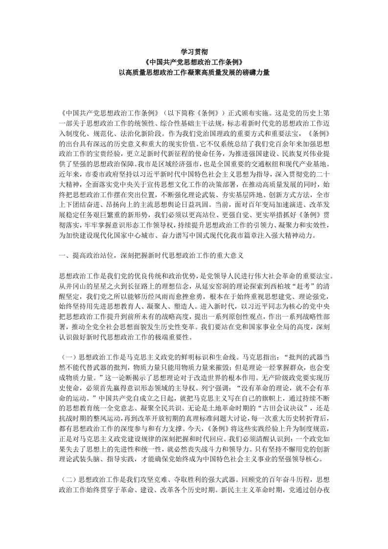 首页材料汇编精美实用《中国***思想政治工作条例》发言材料PPT模板(讲稿)