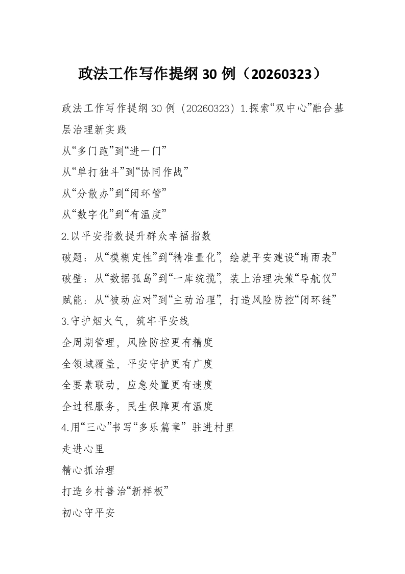 政法工作写作提纲30例(20260323)