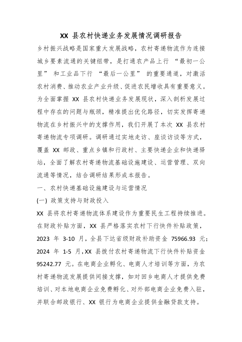 XX 县农村快递业务发展情况调研报告