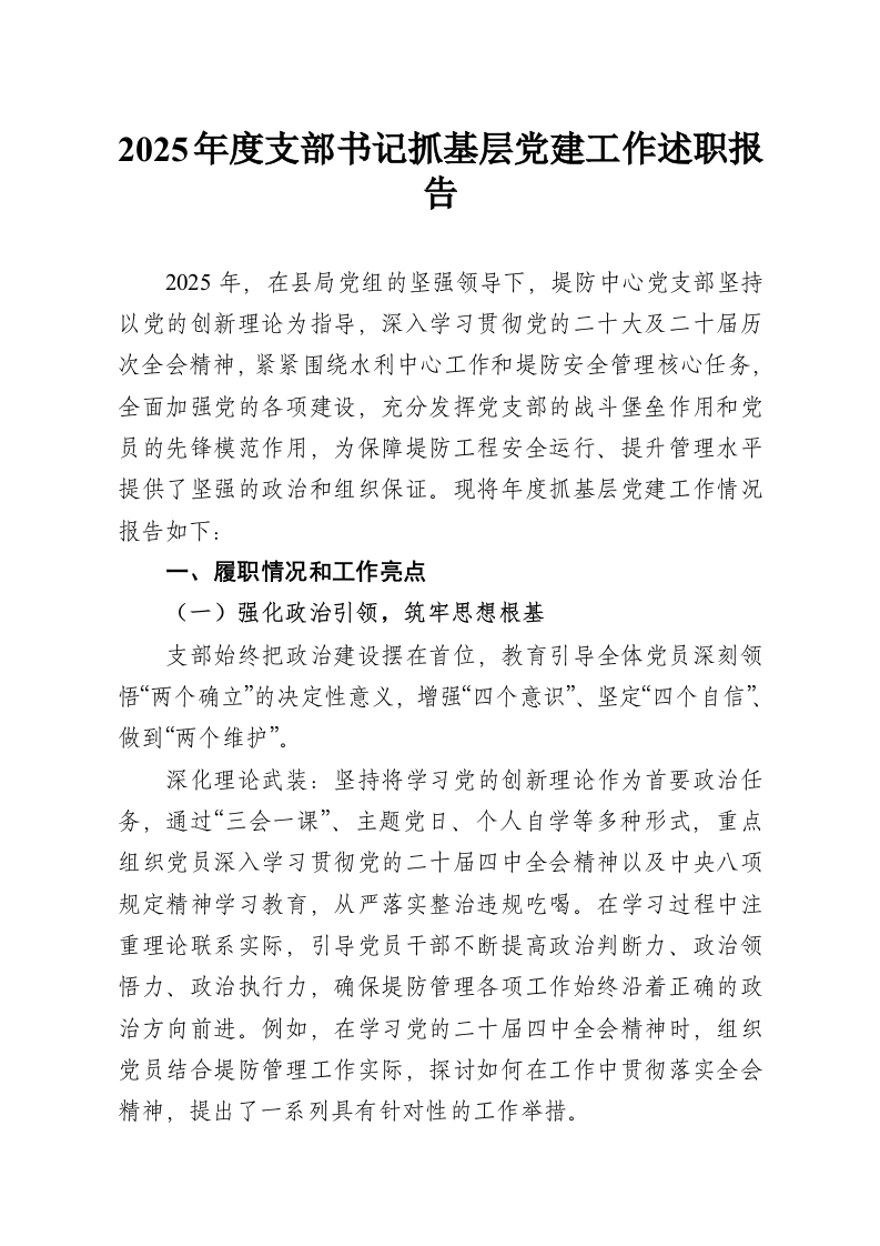2025年度支部书记抓基层党建工作述职报告