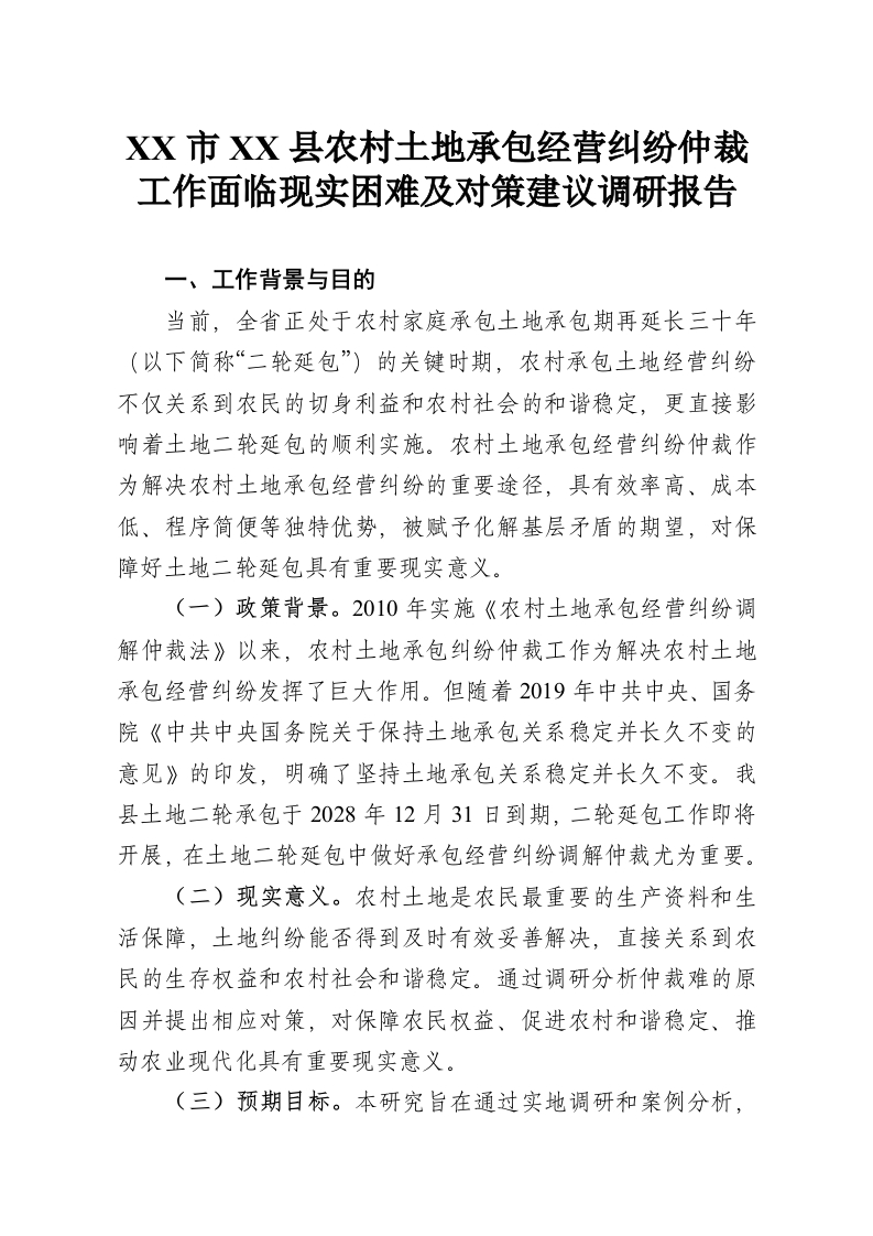XX市XX县农村土地承包经营纠纷仲裁工作面临现实困难及对策建议调研报告