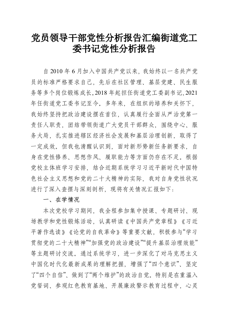党员领导干部党性分析报告汇编街道党工委书记党性分析报告