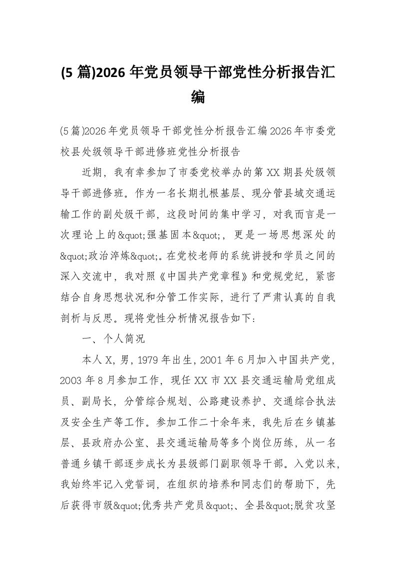 首页材料汇编(5篇)2026年党员领导干部党性分析报告汇编