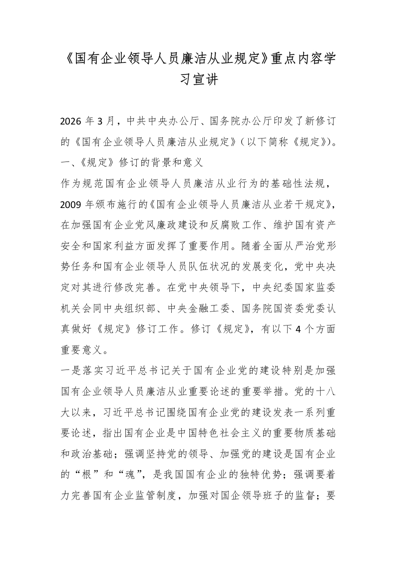 《国有企业领导人员廉洁从业规定》重点内容学习宣讲