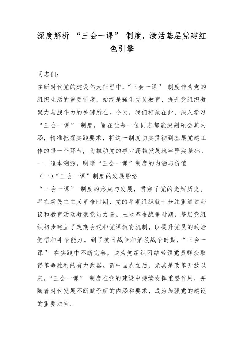 首页工作文档深度解析 “三会一课” 制度,激活基层党建红色引擎