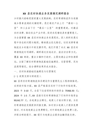 XX县农村快递业务发展情况