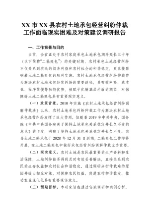 XX市XX县农村土地承包经营纠纷仲裁工作面临现实困难及对策建议